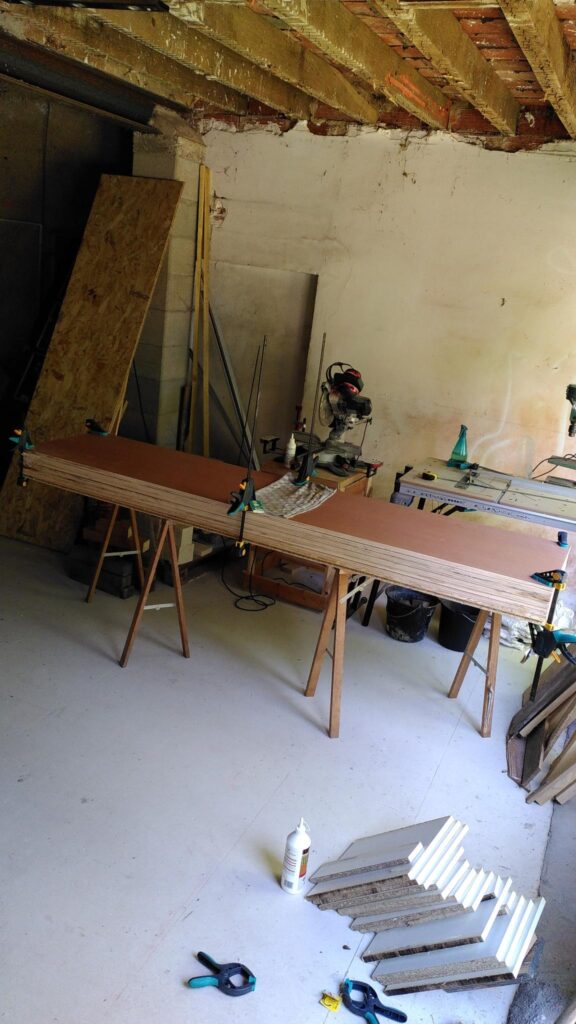 Quelques mauvaises surprises à la livraison, en particulier l’ondulation des planches qui ont eu du mal à se coller. C’est fou la force que ça a !